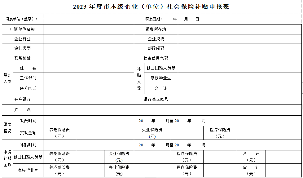(四)《2023年度市本級企業(yè)(單位)社會保險(xiǎn)補(bǔ)貼申報(bào)表》(見附件);