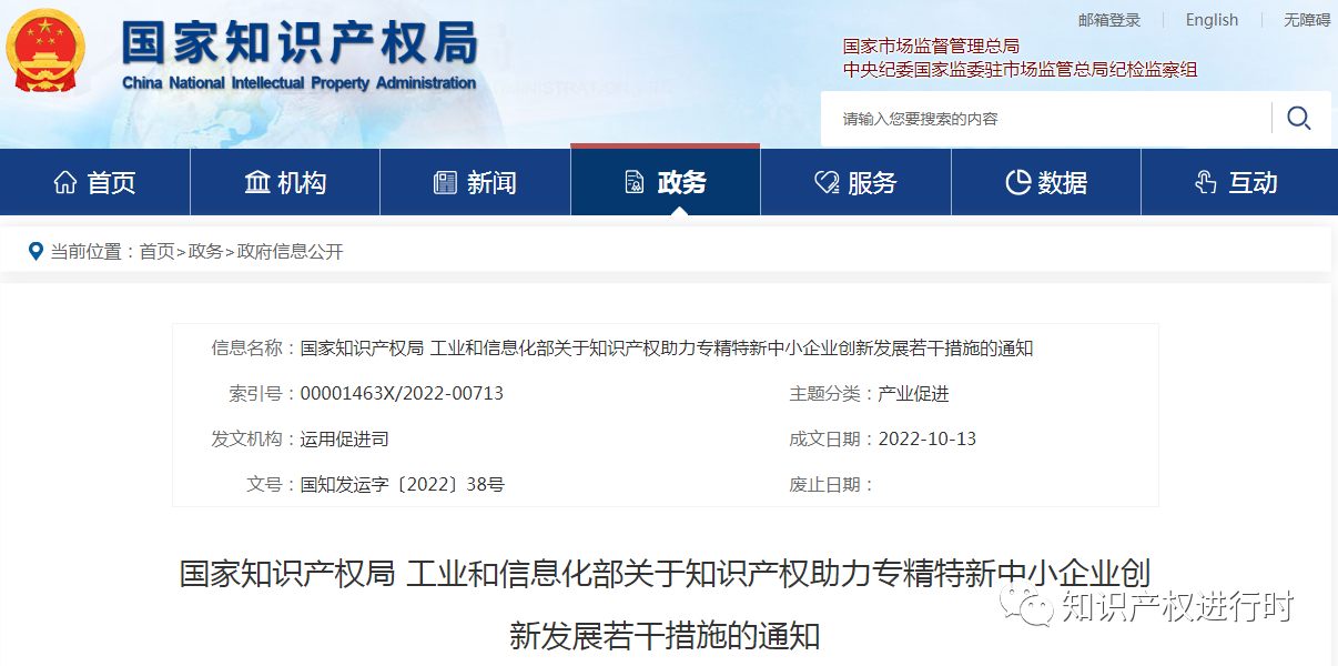 國(guó)家知識(shí)產(chǎn)權(quán)局 工業(yè)和信息化部關(guān)于知識(shí)產(chǎn)權(quán)助力專精特新中小企業(yè)創(chuàng)新發(fā)展若干措施的通知