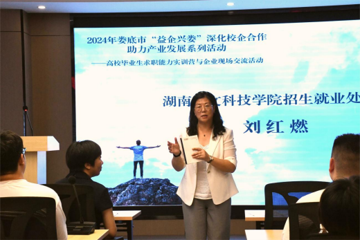 為進(jìn)一步深化校企合作,助力產(chǎn)業(yè)發(fā)展,持續(xù)推動“益企興婁 活動,20247月,婁底市人力資源和社會保障局與湖南人文科 技學(xué)院聯(lián)合開辦了“婁底市首期求職能力實(shí)訓(xùn)營”。為切實(shí)提高實(shí)訓(xùn)營學(xué)員對行業(yè)企業(yè)的認(rèn)知,讓學(xué)員親身感受婁底企業(yè)的發(fā)展?fàn)?/span>況,提高學(xué)員的就業(yè)實(shí)踐能力,202487 日,由婁底市就業(yè)服務(wù)中心、湖南人文科技學(xué)院招生就業(yè)處、婁底市企業(yè)聯(lián)合會、婁底市企業(yè)家協(xié)會聯(lián)合主辦,婁底市節(jié)能環(huán)保產(chǎn)業(yè)促進(jìn)中心等企業(yè)承辦,在婁星產(chǎn)業(yè)開發(fā)區(qū)產(chǎn)學(xué)研中心舉辦“2024年婁底市高校畢業(yè) 生求職能力實(shí)訓(xùn)營與企業(yè)現(xiàn)場交流活動”。湖南人文科技學(xué)院招 生就業(yè)處處長劉紅燃,婁底市就業(yè)服務(wù)中心城鄉(xiāng)就業(yè)服務(wù)部部長聶瑞成帶隊(duì)參加。