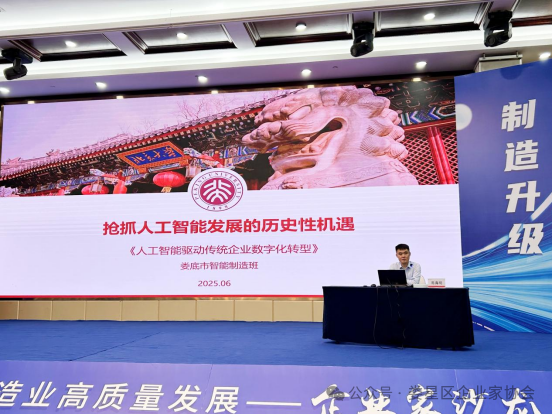 易海明主任以“制造業(yè)如何搶抓人工智能發(fā)展的歷史性機(jī)遇”為題,從認(rèn)識(shí)人工智能模型,培育人工智能模型的迫切性,培育人工智能模型的戰(zhàn)略性要素,詳解人工智能模型培育案例和趨勢(shì)四個(gè)方面系統(tǒng)剖析了人工智能技術(shù)演進(jìn)脈絡(luò)及其與制造業(yè)融合的核心場(chǎng)景,結(jié)合國(guó)內(nèi)外標(biāo)桿案例,為在場(chǎng)企業(yè)家描繪了AI賦能研發(fā)設(shè)計(jì)、生產(chǎn)流程優(yōu)化、供應(yīng)鏈管理、質(zhì)量控制和精準(zhǔn)營(yíng)銷的全鏈條圖景?;?dòng)環(huán)節(jié),企業(yè)家結(jié)合自身轉(zhuǎn)型痛點(diǎn)踴躍提問(wèn),易主任就技術(shù)選型、投入產(chǎn)出比、安全風(fēng)險(xiǎn)等實(shí)際問(wèn)題進(jìn)行了針對(duì)性解答,現(xiàn)場(chǎng)交流氣氛熱烈。