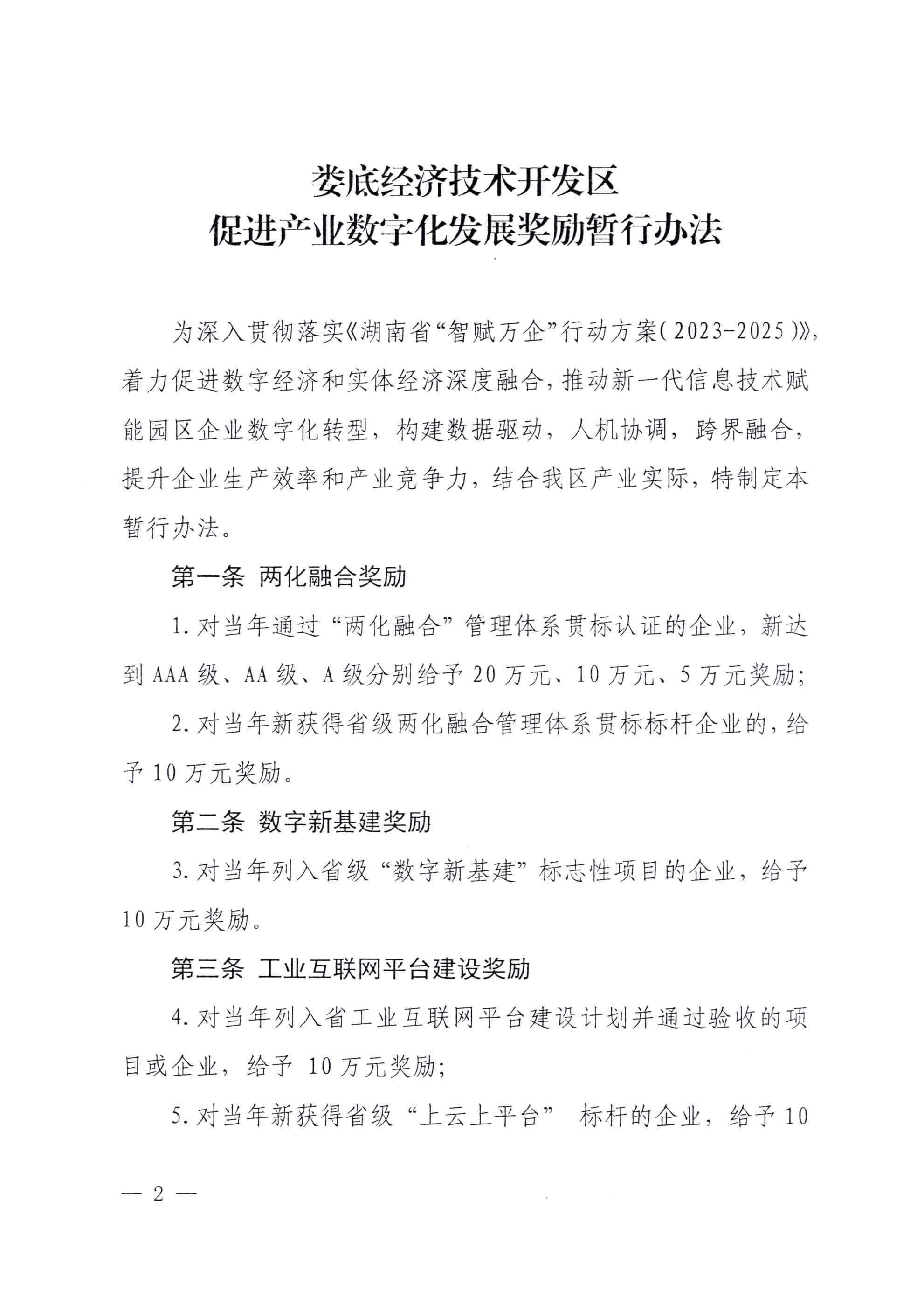婁底經(jīng)濟技術(shù)開發(fā)區(qū)管理委員會 關(guān)于印發(fā)《婁底經(jīng)濟技術(shù)開發(fā)區(qū)促進產(chǎn)業(yè) 數(shù)字化發(fā)展獎勵暫行辦法》的通知