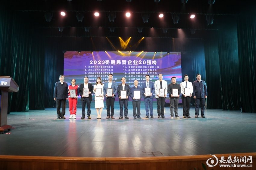 市領(lǐng)導戴德清、梁立堅、謝學龍、李文洪、楊維、李德仁、傅小松等出席。市委常委、常務副市長蔣天海發(fā)布“2023婁底民營企業(yè)20強榜”“2023婁底民營企業(yè)新星榜”。